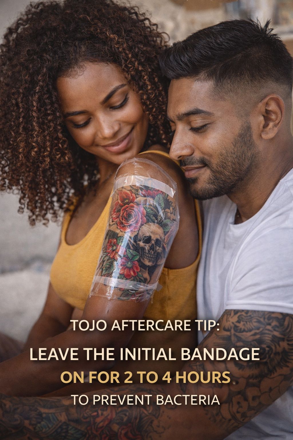Tattoo aftercare is the routine you follow after getting a new tattoo to keep it clean, moisturized, and protected while it heals. It includes gentle washing, applying a dedicated tattoo aftercare cream or ointment several times a day, and avoiding sun, swimming, and picking. Good aftercare helps your tattoo heal cleanly, reduces scabbing and infection risk, and keeps your ink looking sharp. Tojo is formulated as a professional tattoo aftercare cream to support healing and long-term vibrancy.